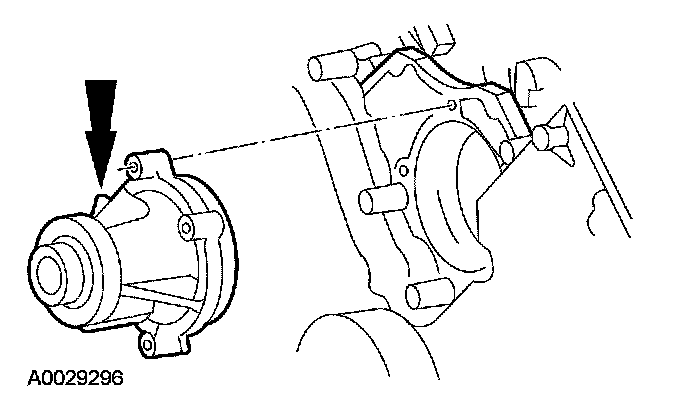 Apply silicone gasket and sealant at the engine front cover-to-cylinder block sealing surface.