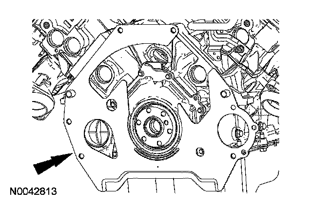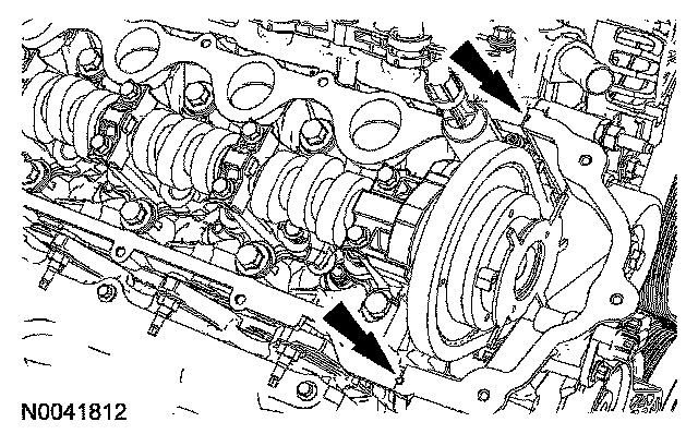 108. NOTE: The crankshaft rear seal retainer plate does not have a sealant groove. Gasket maker must be applied to the crankshaft rear seal retainer plate mating surface on the engine block.