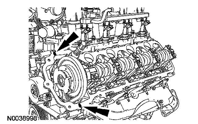 Apply silicone gasket and sealant in 2 places where the engine front cover meets the LH cylinder head.
