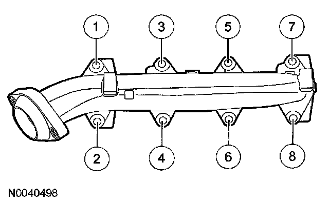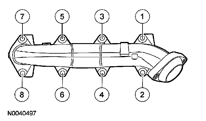 73. Position new gaskets, the RH exhaust manifold and tighten the 8 new nuts in the sequence shown.