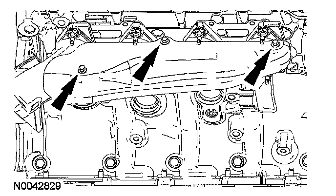 80. Position the LH exhaust manifold heat shield and install the bolts.
