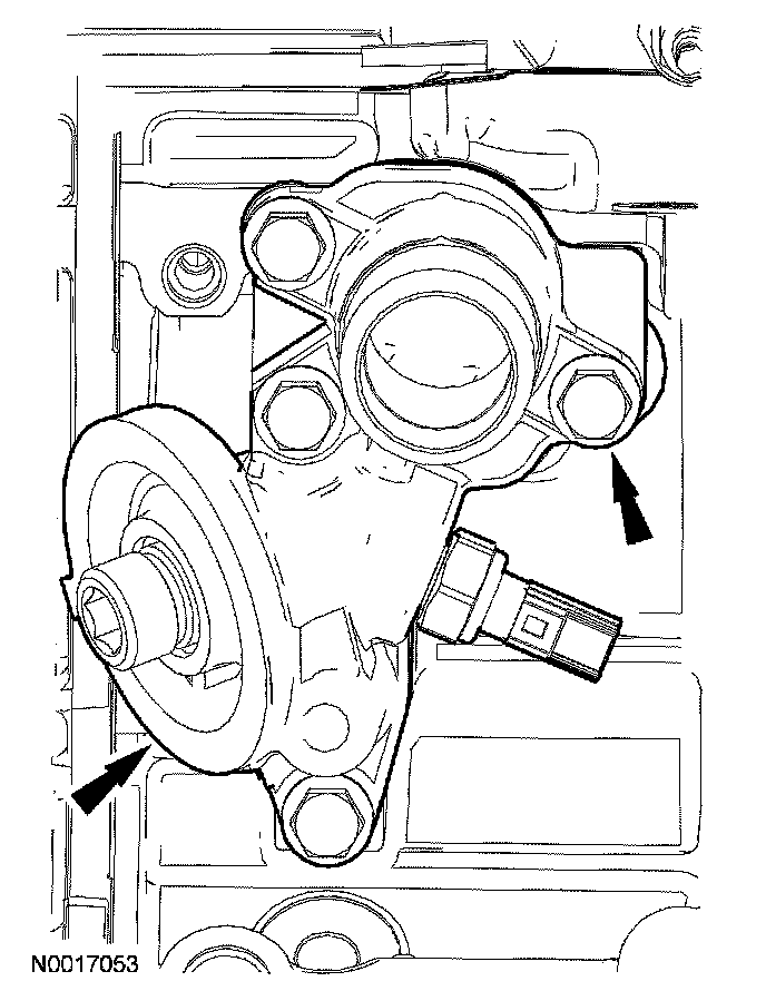 Connect the RH and LH variable camshaft timing (VCT) solenoid electrical connectors.