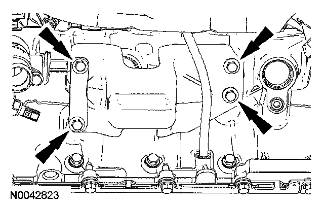 Position the oil filter adapter and install the bolts.