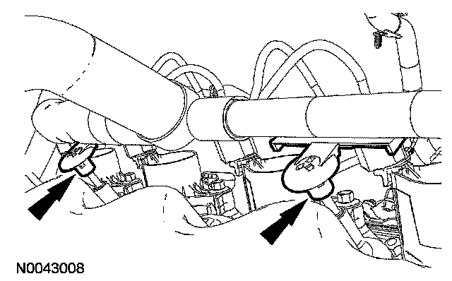 94. Attach the wiring harness retainers to the LH valve cover studs.