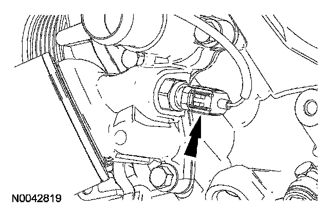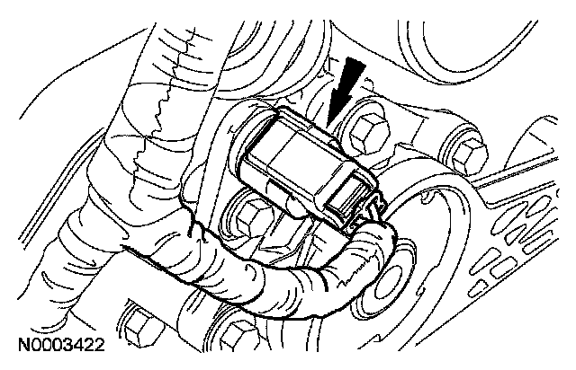 103. Connect the crankshaft position sensor electrical connector and attach the wiring harness retainer.