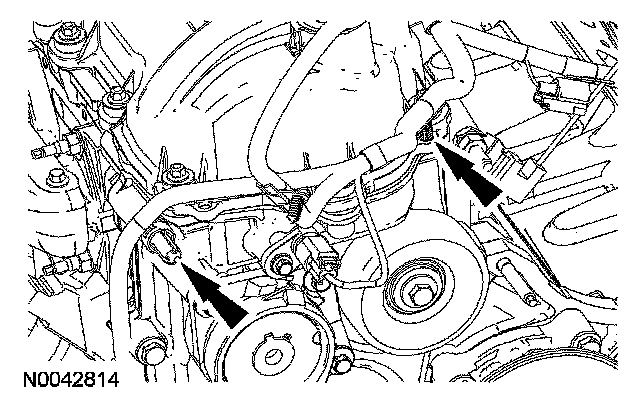 Position the heater supply tube and the hoses as an assembly and install the stud bolt.