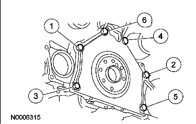 109. Install the crankshaft rear seal retainer plate and loosely install the 6 bolts.