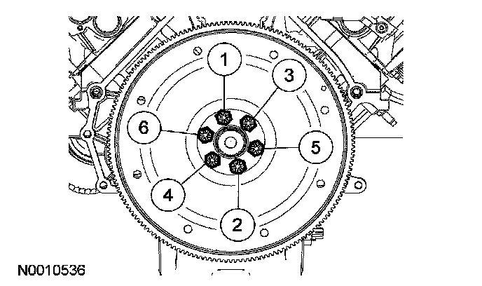 119. Position the flexplate and install the bolts in the sequence shown.