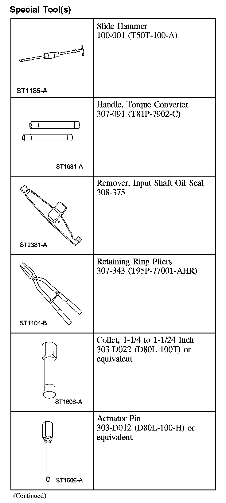 TransmissionSpecial Tool(s) (Part 1):