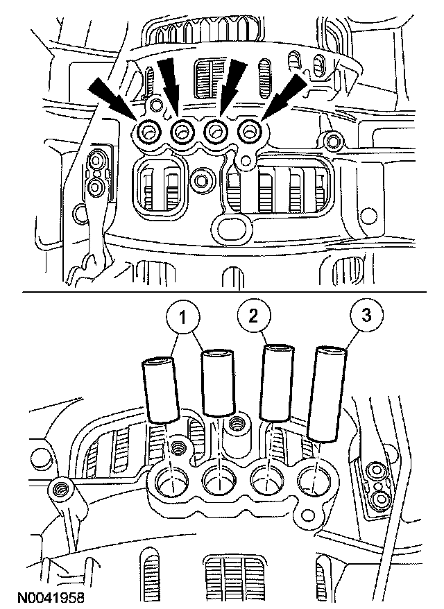 11. Remove and discard the 4 rubber feed tubes for the center support. Note the size and location while removing for correct installation.