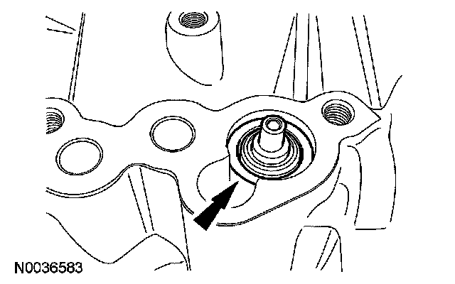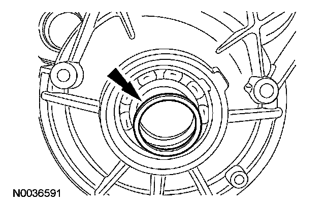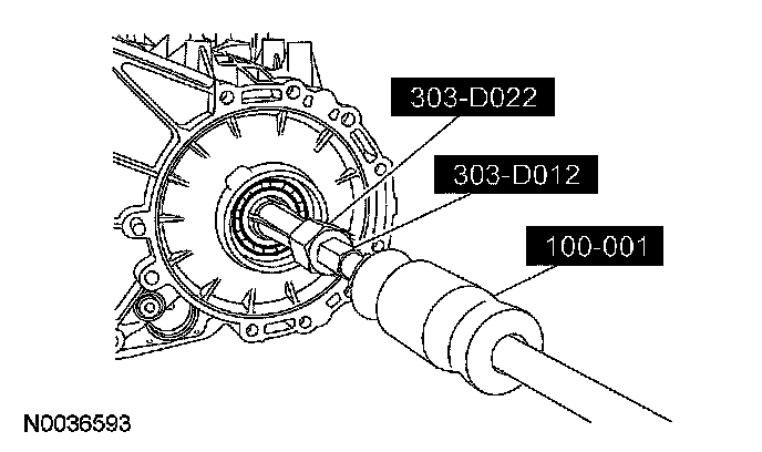 39. CAUTION: Use care when installing the special tool. Look inside the transmission case to make sure that the tool contacts the bearing only and not the lip of the case, or damage to the case will occur.