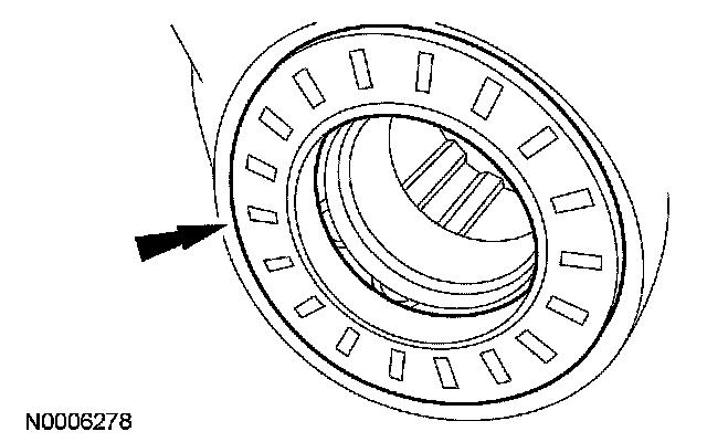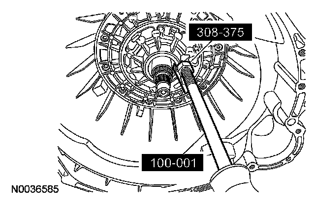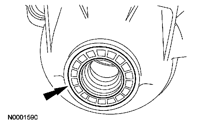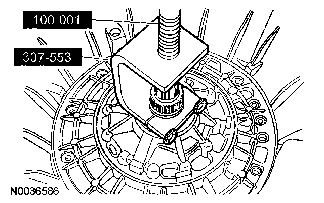 45. CAUTION: Use care when installing the special tool. Look inside the transmission case to make sure that the tool contacts the bearing only and not the lip of the case, or damage to the case will occur.
