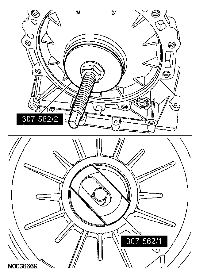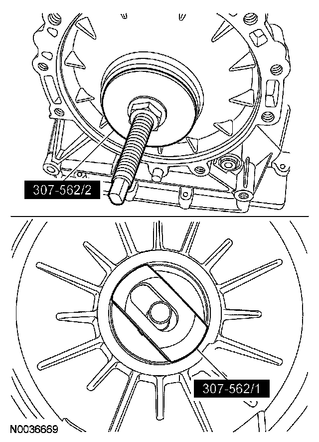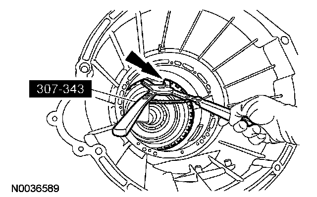 14. Using the special tools, remove and discard the front pump seal.