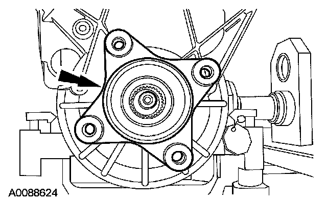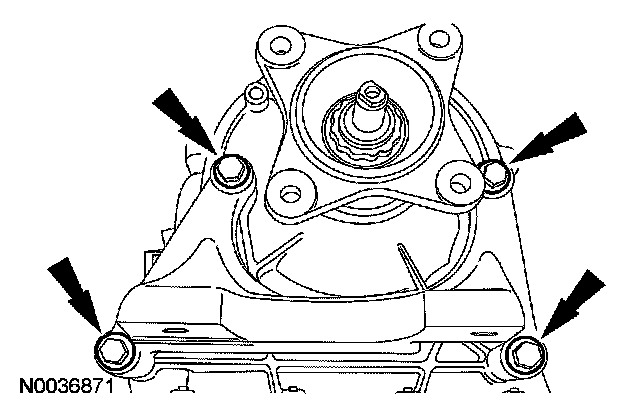 15. Remove and discard the front pump bolts.