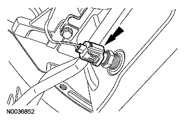 8. Install the catalyst monitor sensor (CMS) electrical connector to the LH side of the transmission.