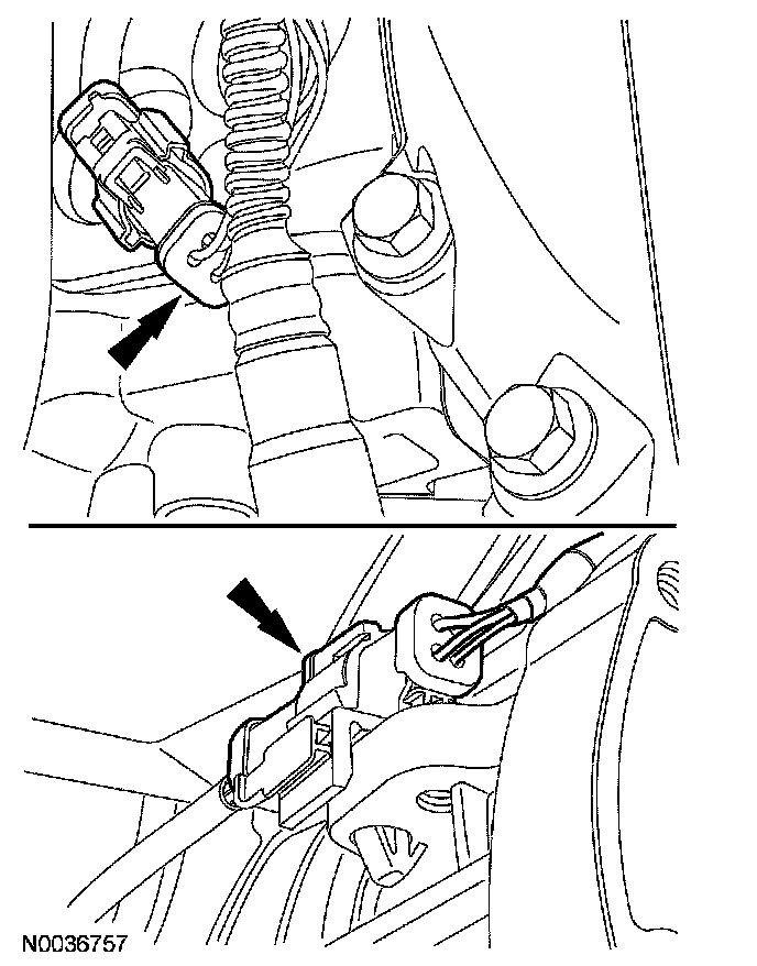 19. NOTE: When installing the selector lever cable, make sure that the selector lever cable locking tabs are locked in place and the cable end is snapped onto the ball stud. Press the selector lever cable into the bracket and listen for the cable to click into place. Pull back on the selector lever cable to make sure that it is locked into the bracket. Also, make sure that the selector lever cable end is correctly installed onto the ball stud. Pull back on the selector lever cable to make sure that the cable end is correctly installed.