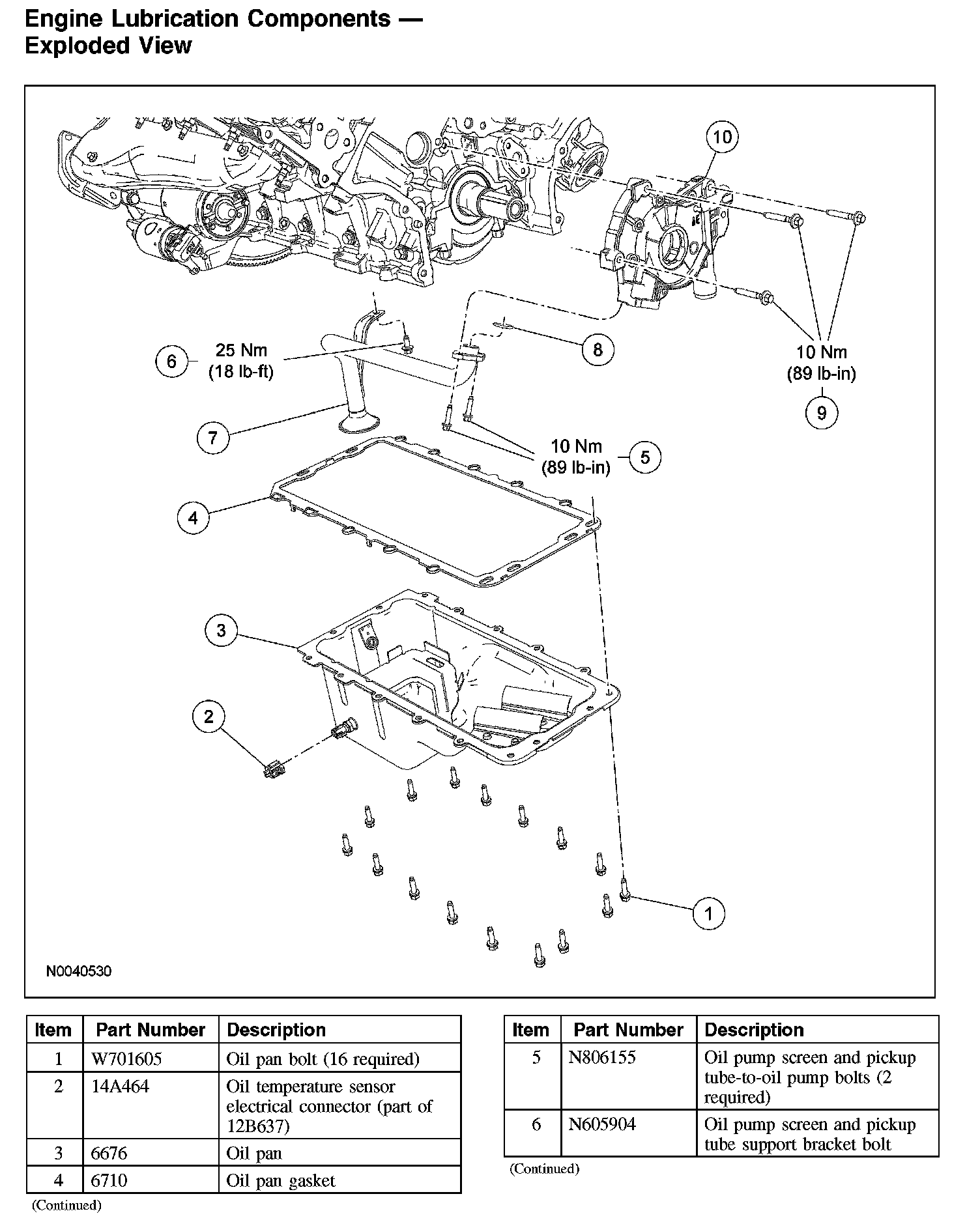 Engine Lubrication Components - Exploded View (Part 2):