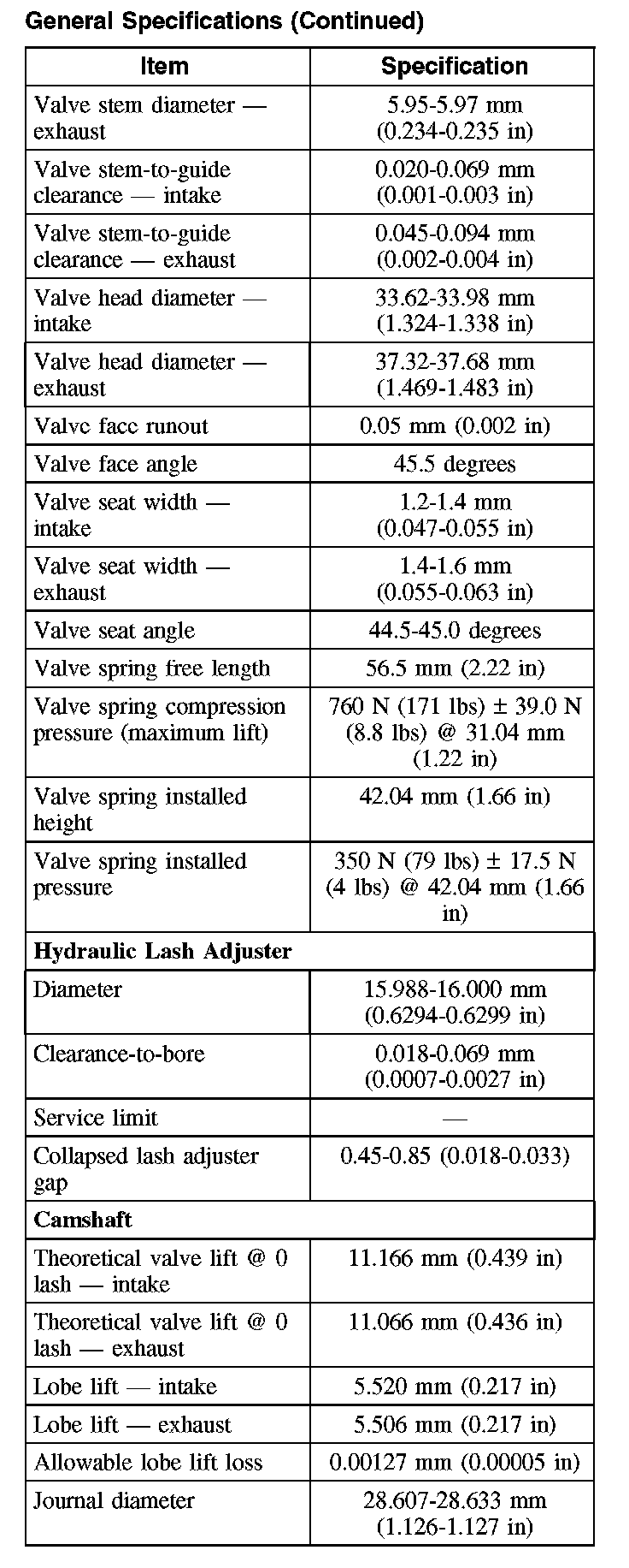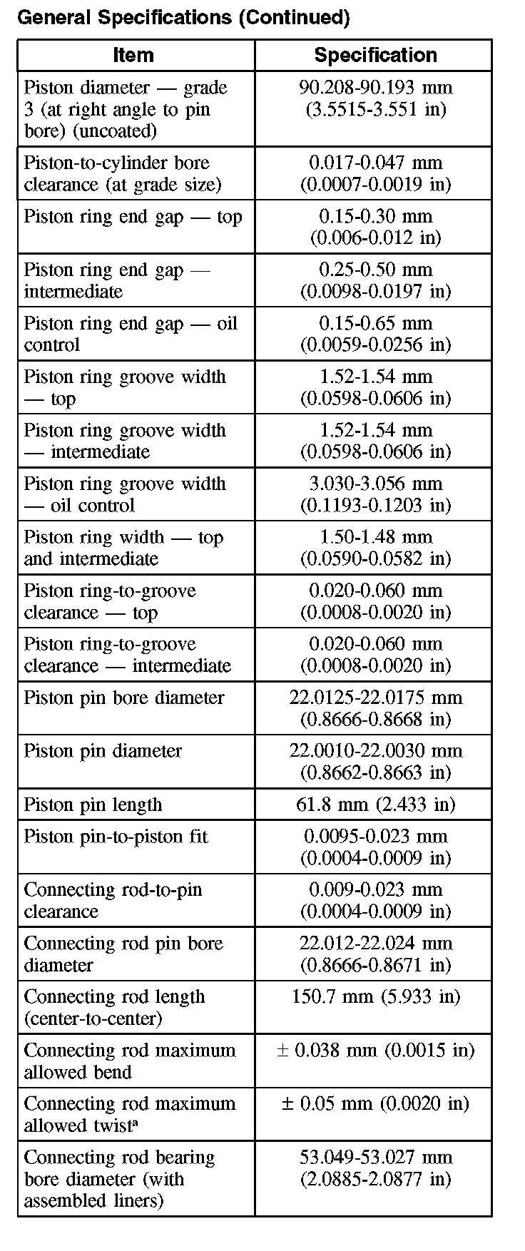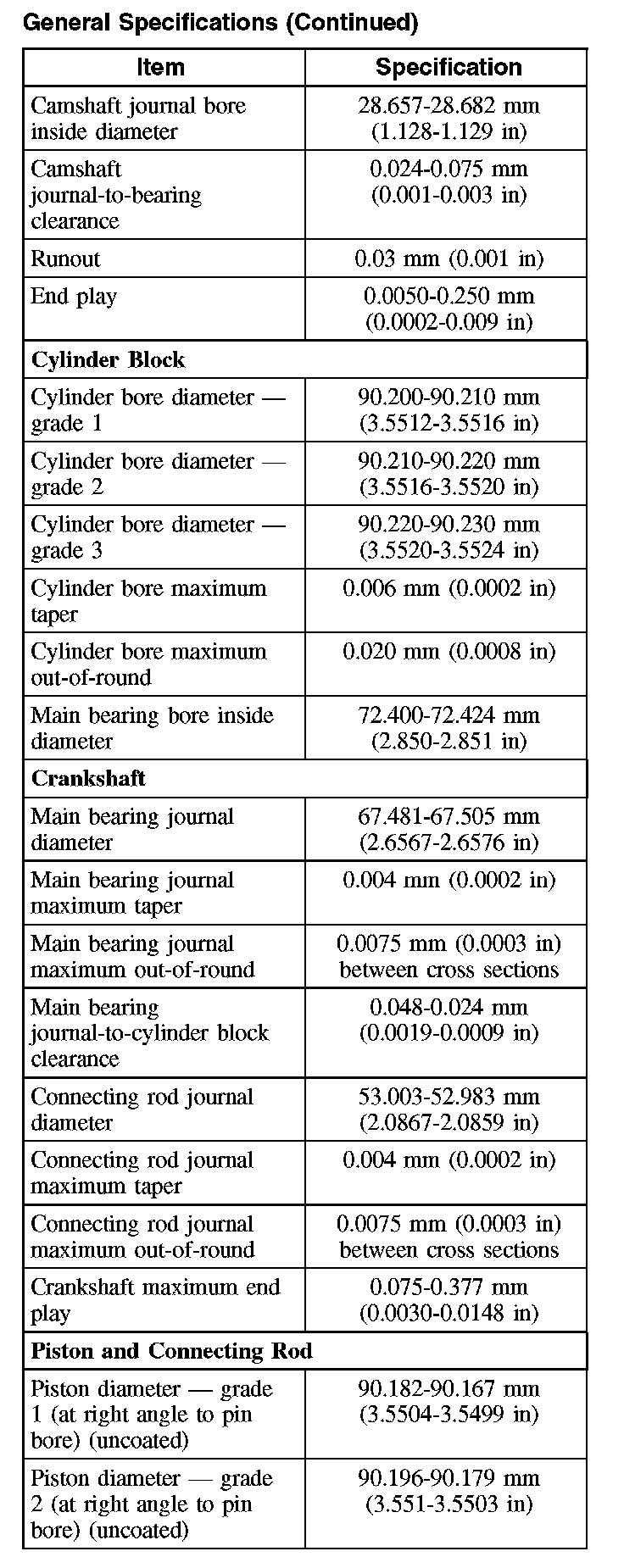 General Specifications (Continued):