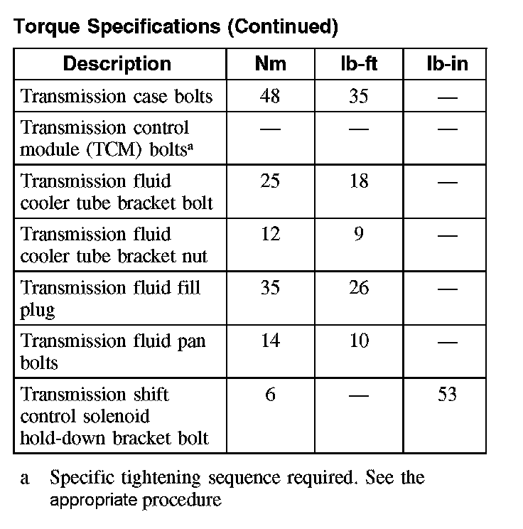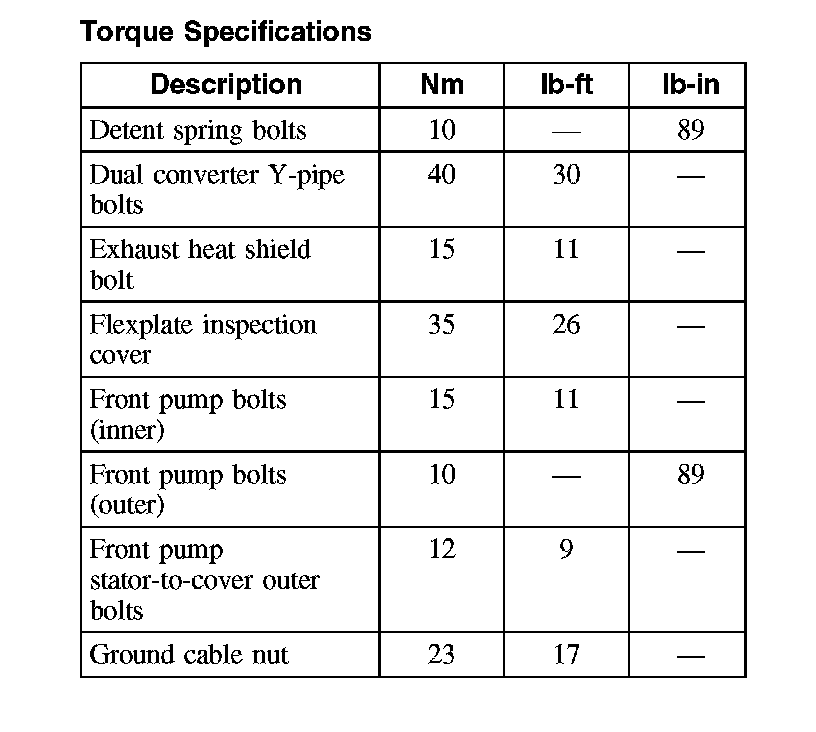 Torque Specifications (Part 1):