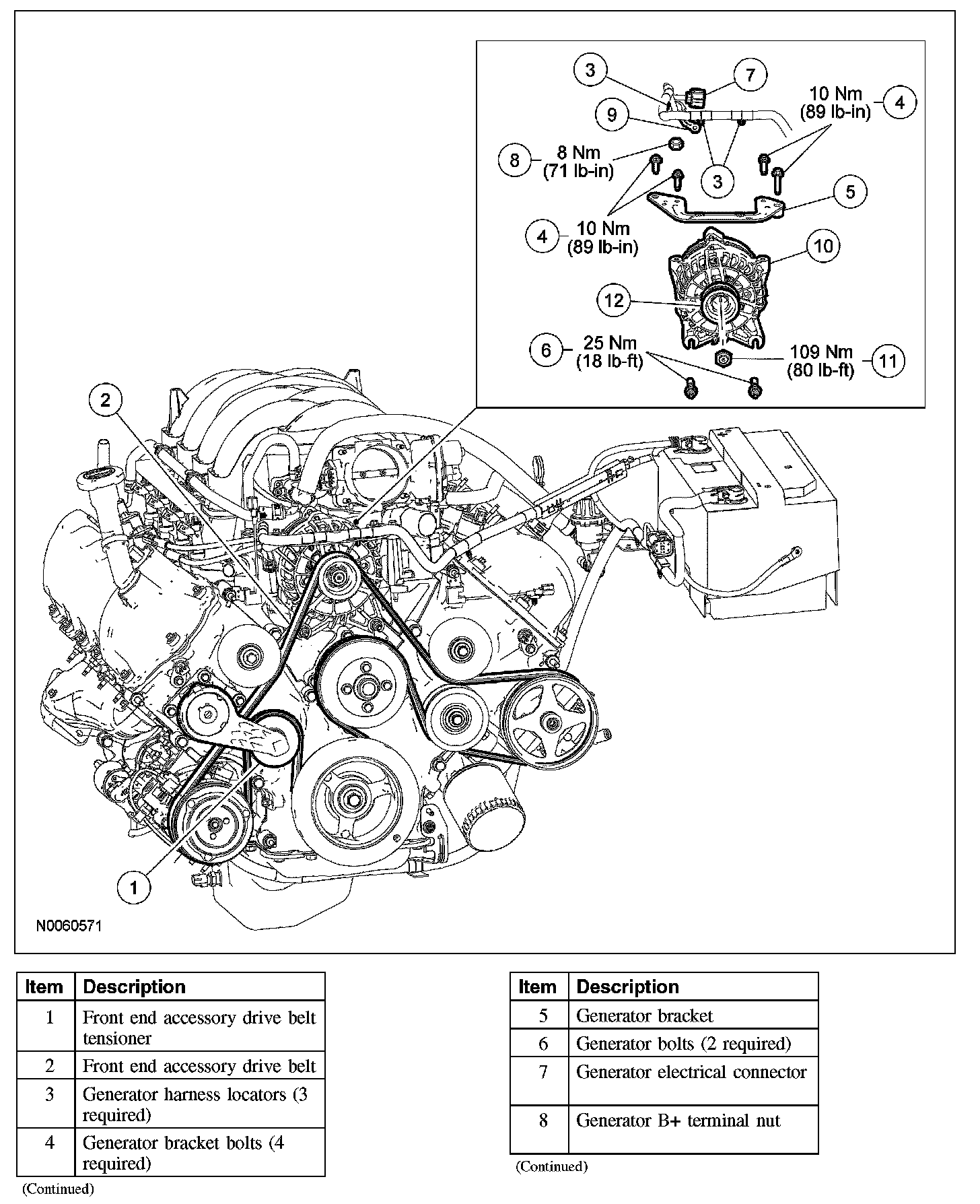 8. Position the protective cover aside, remove and discard the nut and position the generator B+ terminal aside.