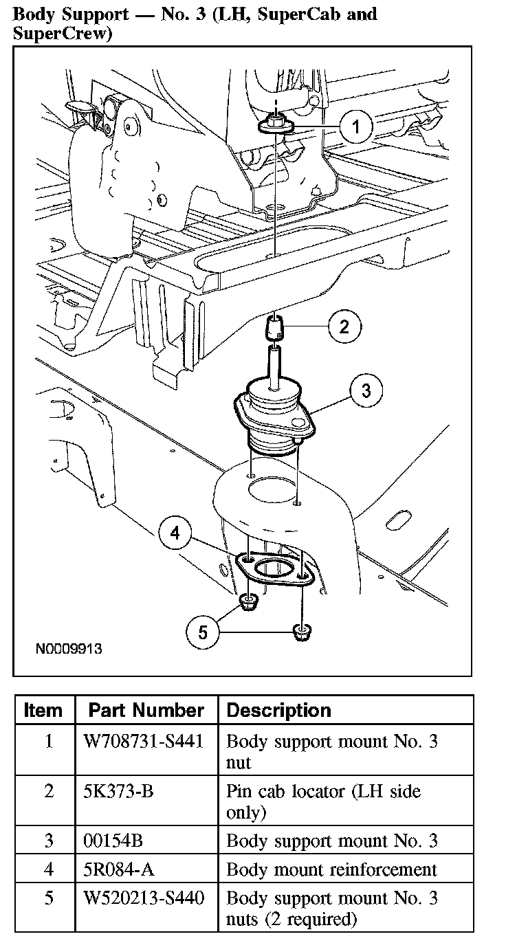 Body Support - No. 2 (Regular Cab, SuperCab And SuperCrew) And No. 3 (RH, SuperCab And SuperCrew):