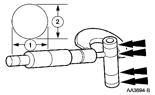 1. Measure the piston diameter 90 degrees from the piston pin and 42 mm (1.65 inch) down from the top of the piston at the point indicated.