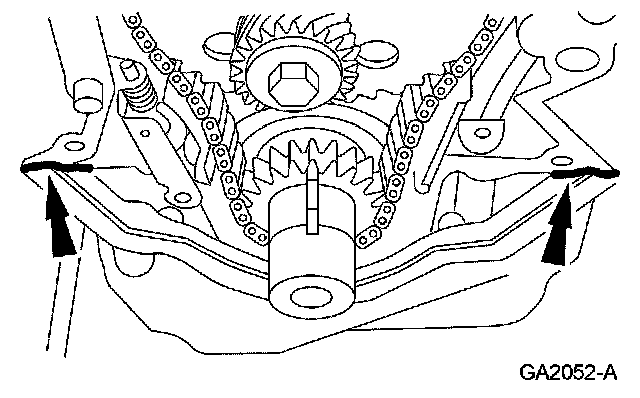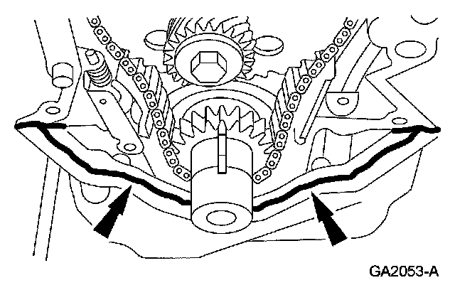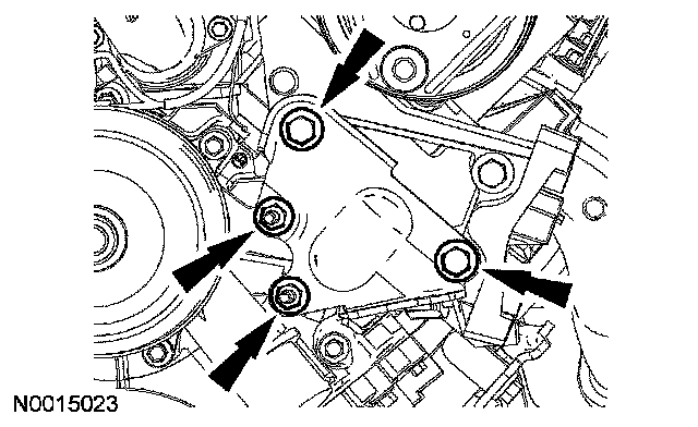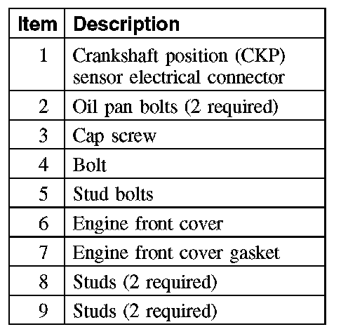 4. NOTE: If the engine front cover is not secured within 4 minutes, the sealant must be removed and the sealing areas cleaned. To clean the sealing area, use silicone gasket remover and metal surface prep. Follow the directions on the packaging. Failure to follow this procedure can cause future oil leakage.