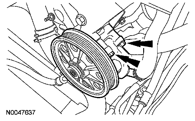 Loosen the 4 power steering pump bolts and slide the power steering pump out approximately 25 mm (1 inch).
