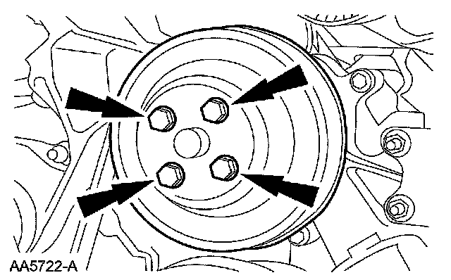 15. Position the coolant pump pulley and install the bolts.