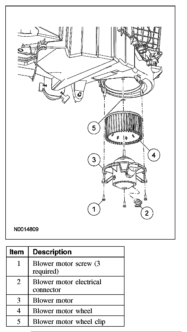 1 Remove the blower motor wheel clip.