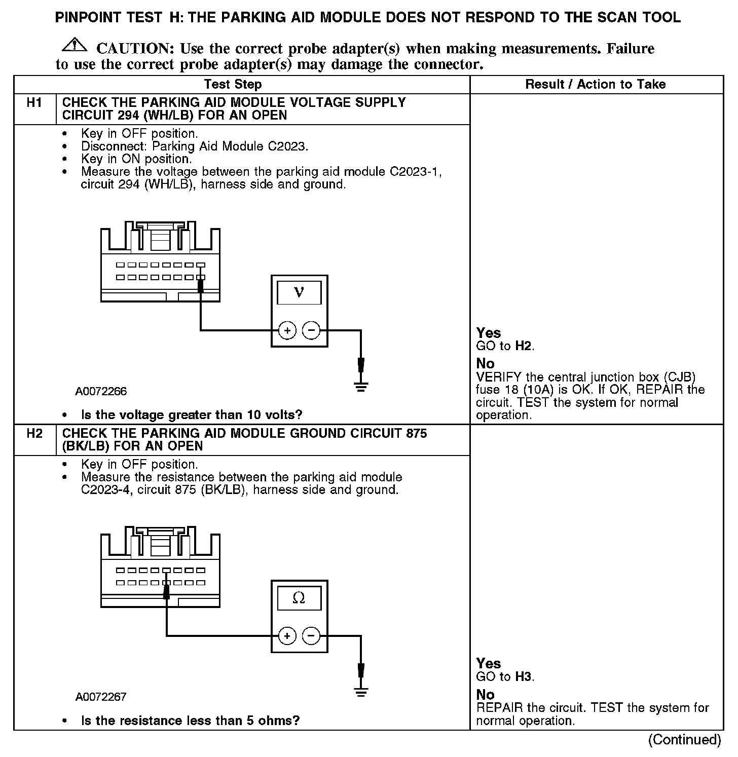 PINPOINT TEST H: THE PARKING AID MODULE DOES NOT RESPOND TO THE SCAN TOOLH1-H2: