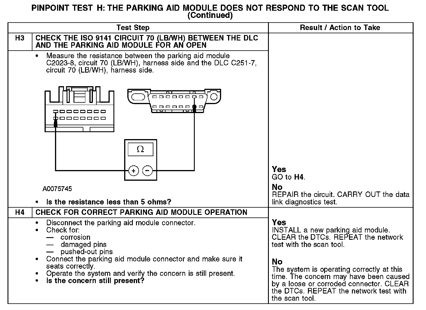 Test H: The Parking Aid Module Does Not Respond to the Scan Tool