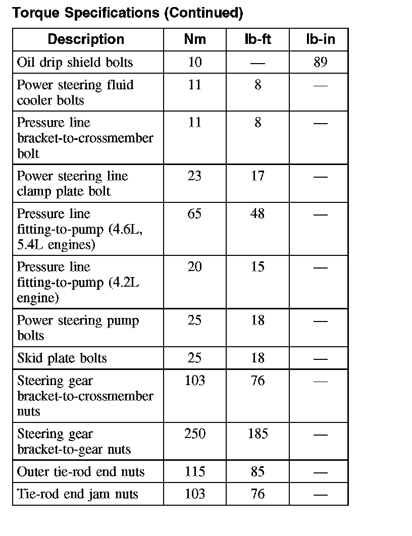 Torque Specifications: