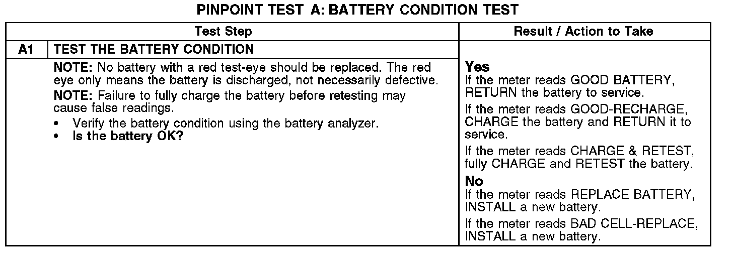 PINPOINT TEST A: BATTERY CONDITION TEST