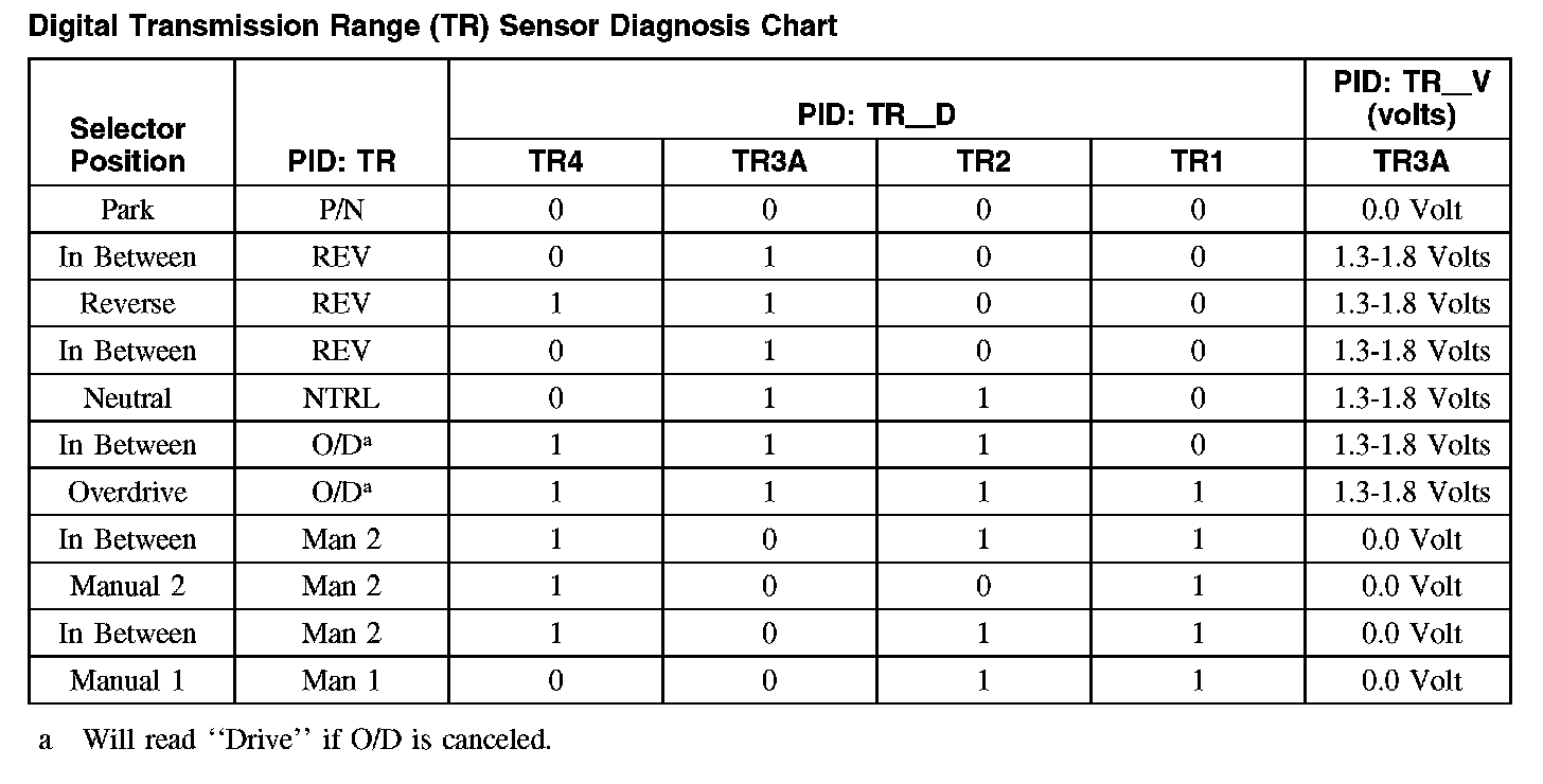 Digital Transmission Range (TR) Sensor Diagnosis ChartDigital Transmission Range (TR) Sensor Diagnosis Chart: