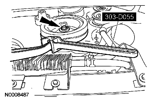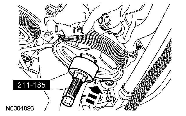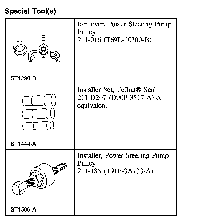 18. CAUTION: If the pulley has been removed and installed twice, install a new power steering pump pulley.