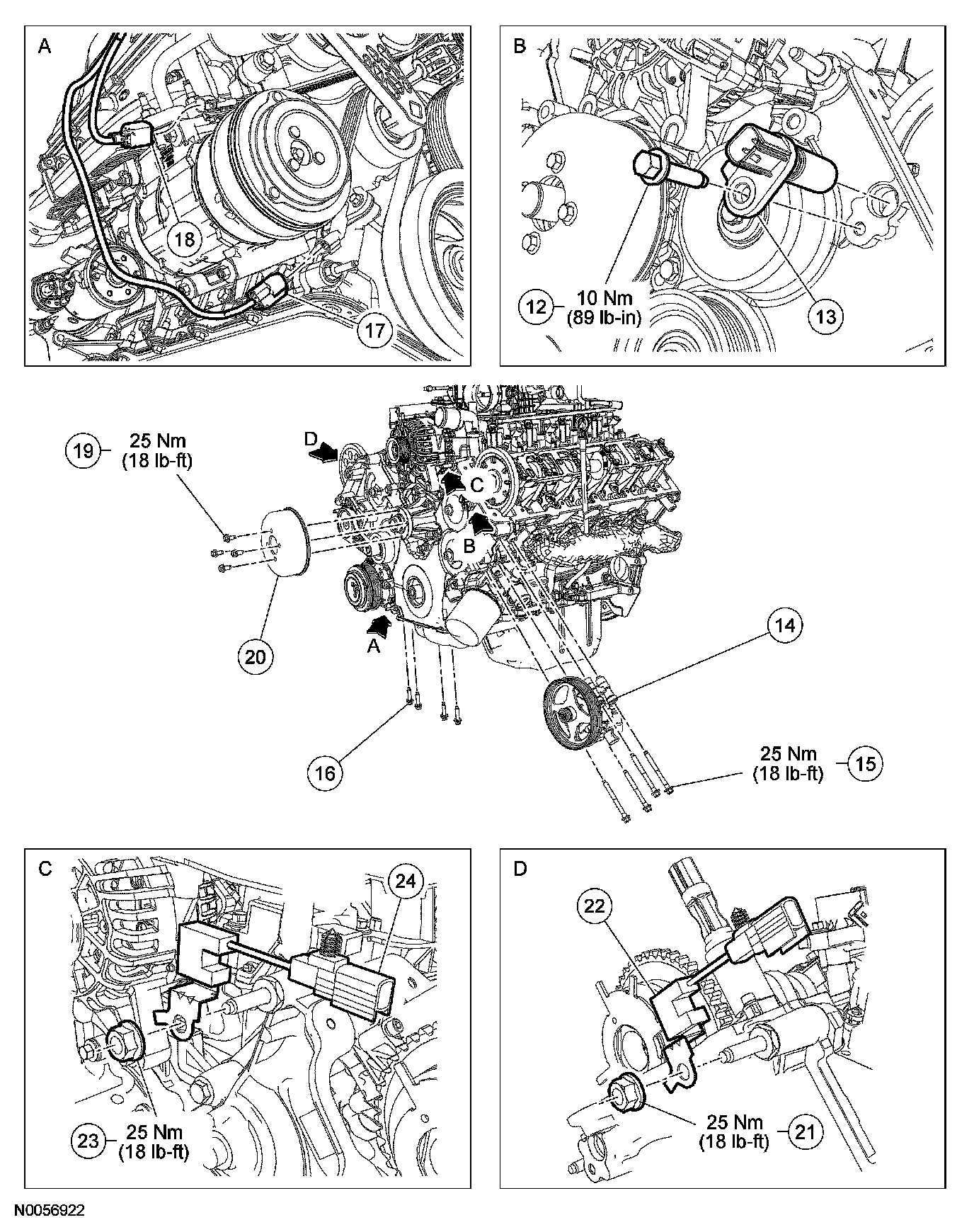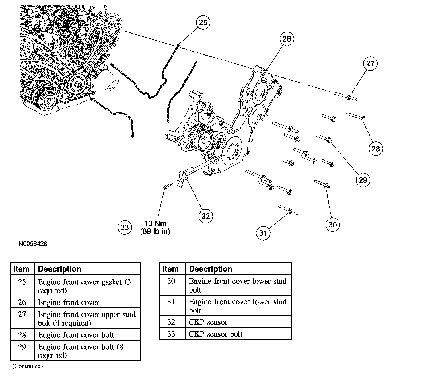 4. Tighten the engine front cover fasteners in the sequence shown to 25 Nm (18 ft. lbs.).