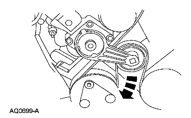 6. Rotate the tensioner clockwise and remove the drive belt.