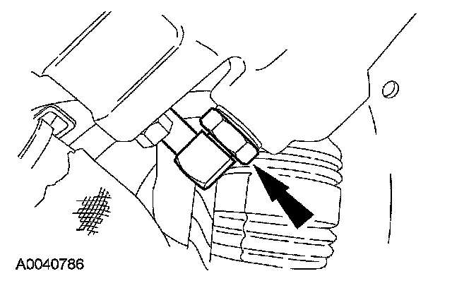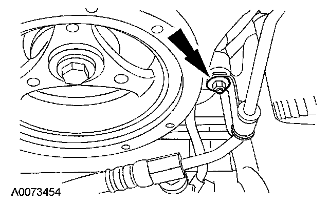 14. Remove the nut and position aside the power steering pressure tube.