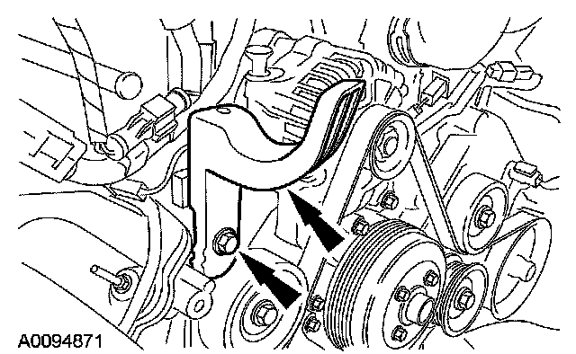 14. Position the power steering pump and install the bolts.