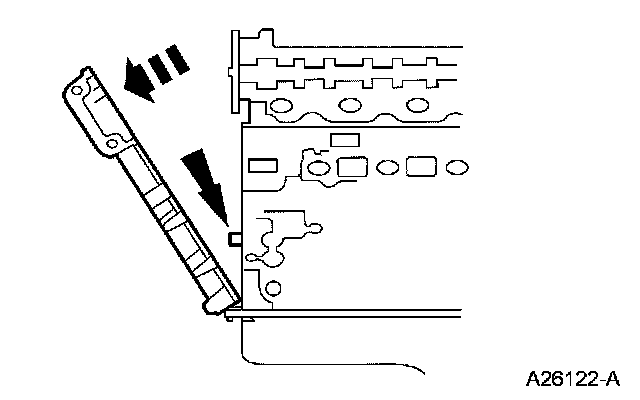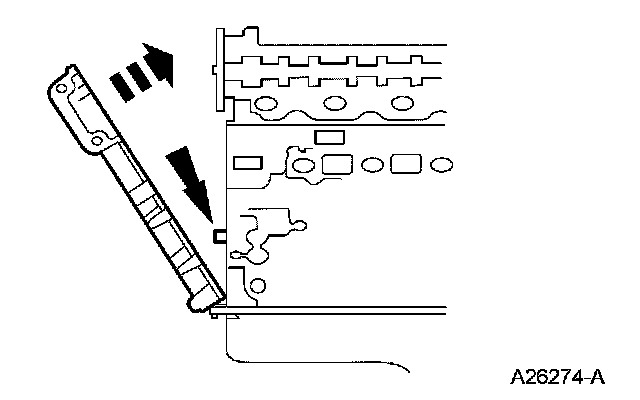 Apply a bead of silicone gasket and sealant along the cylinder head-to-cylinder block surface and the oil pan-to-cylinder block surface, at the locations shown.