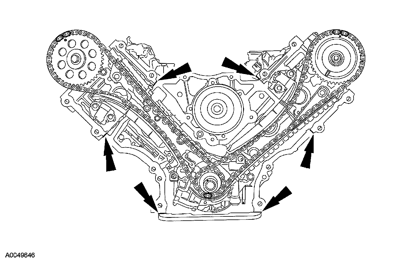 ^ Remove the engine front cover gaskets.