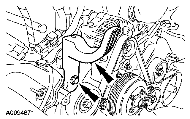 15. Remove the bolts and position the power steering pump assembly aside.