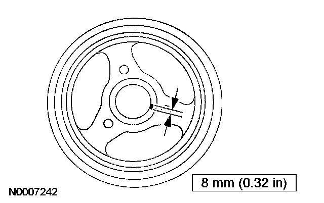 ^ Inspect the pulley for paint marks in the web area near the hub. If there are 2 paint marks, install a new pulley. If there is one paint mark or none at all, use a pencil to mark the web area of the pulley near the hub.