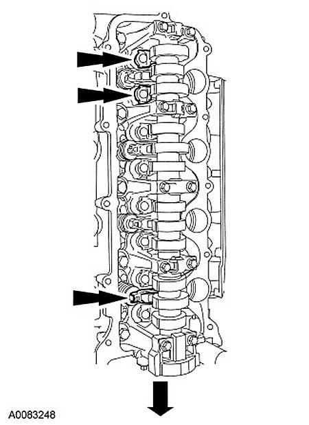 NOTICE: The camshaft bearing caps must be installed in their original locations. Record camshaft bearing cap locations. Failure to follow these instructions may result in engine damage.