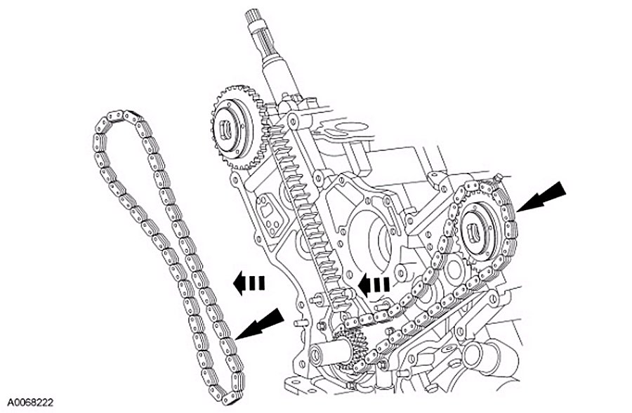 12. Remove the RH and LH timing chains and the crankshaft sprocket.
