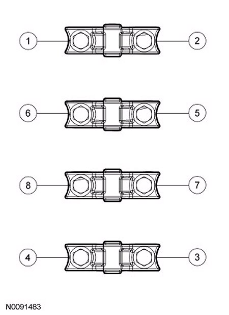 21. Remove the remaining bolts in the sequence shown and remove the remaining LH camshaft bearing caps.