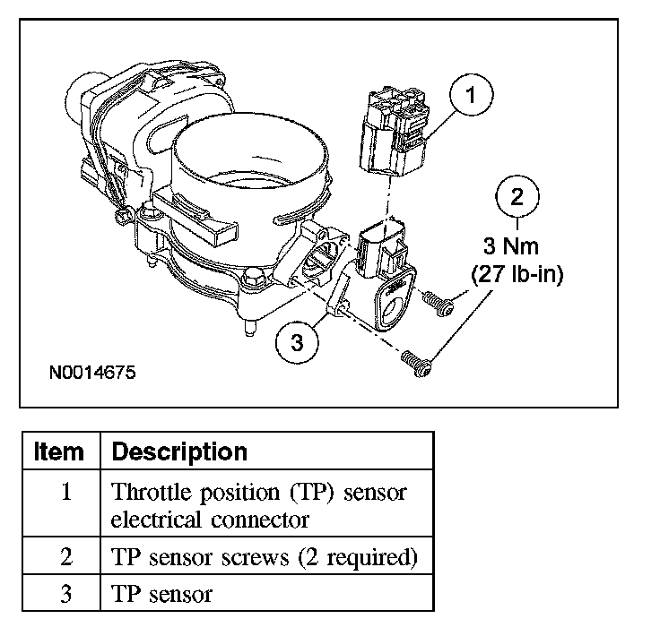 NOTE: When installing the new TP sensor, make sure that the radial locator tab on the TP sensor is aligned with the radial locator hole on the throttle body (TB).