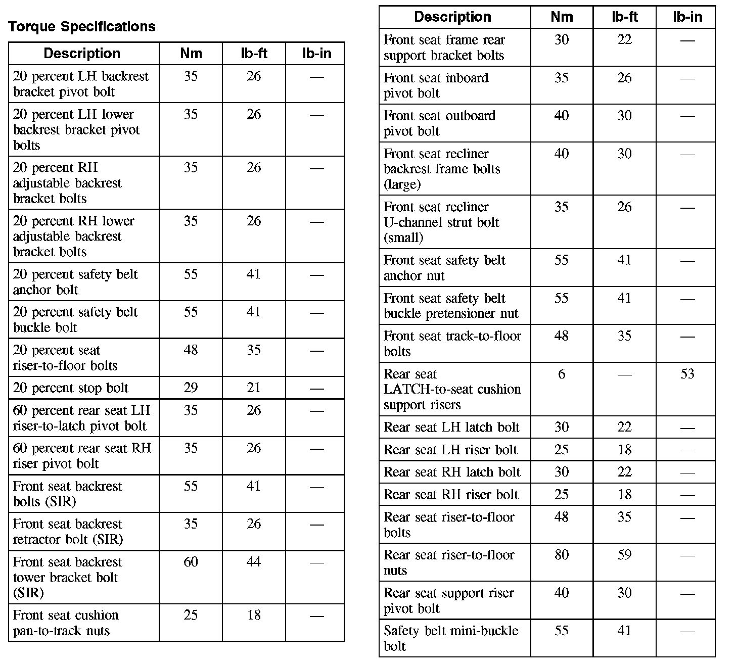 Torque Specifications:
