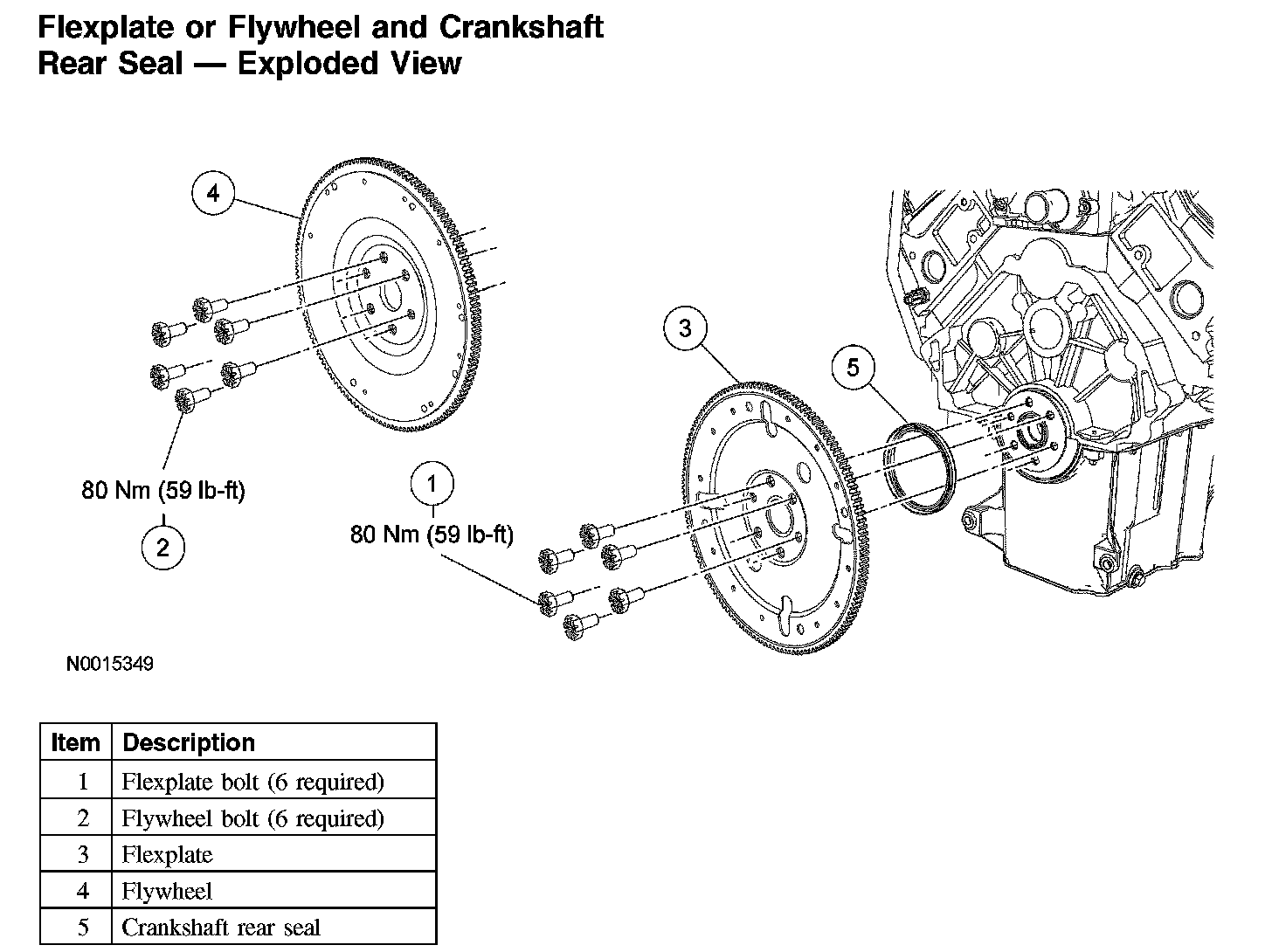 Flexplate or Flywheel and Crankshaft Rear Seal - Exploded View: